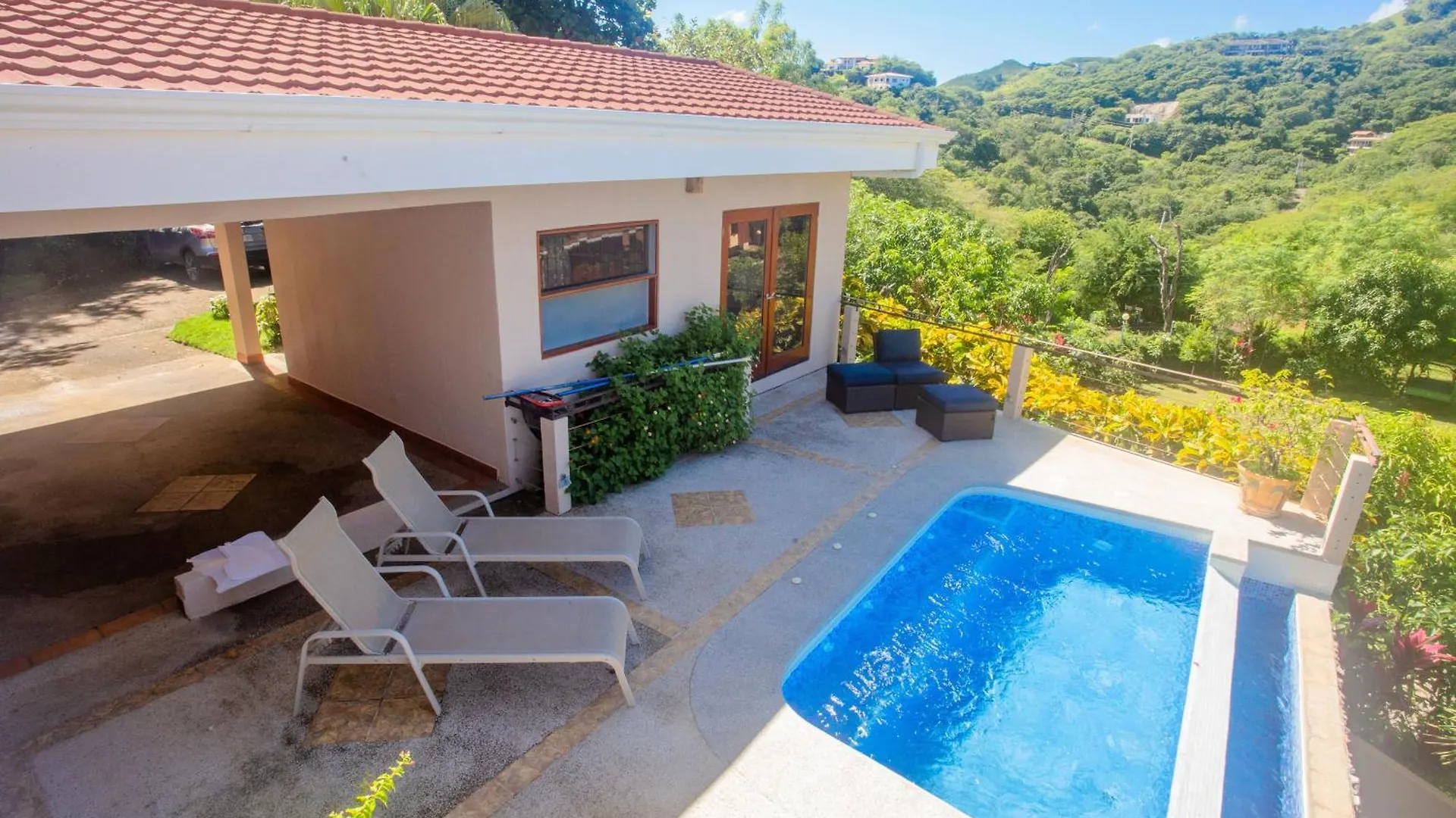 A pousada de Playa Ocotal está equipada com kitchenette com chaleira elétrica e refrigerador. Os hóspedes podem relaxar com piscina privada ou beneficiar de pátio e jardim disponíveis no local.